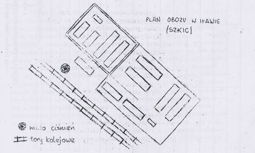 Zamieszkałem w obozie, składającym się z kilkunastu drewnianych baraków, zlokalizowanych poza miastem, po lewej stronie linii kolejowej, prowadzącej do Działdowa. W barakach obozu mieszkali osobno Polacy i osobno Rosjanie. Specjalną część obozu, mocno odrutowaną i zabezpieczoną, stanowiły baraki, gdzie przebywali „Strafgefangene”, tzn. ludzie całkowicie pozbawieni wolności za wejście w kolizję z prawem okupanta. Ubrani byli jednolicie w ciemne bluzy i spodnie z żółtymi lampasami. Pracowali często razem z nami, ale pilnowani byli przez uzbrojonych dozorców i traktowani przez nich w sposób nieludzki. Byli to przeważnie młodzi ludzie, już w wieku od 16 lat, pochodzący przeważnie z okolic Ciechanowa, Rypina, Sierpca, Lipna itp. Wycieńczeni i wychudzeni, nie mający prawie żadnej łączności z najbliższymi, licznie umierali. W granicach istniejących możliwości staraliśmy się udzielić im skromnej pomocy, ale to nie mogło mieć żadnego zasadniczego wpływu na los tych nieszczęśliwych ludzi.