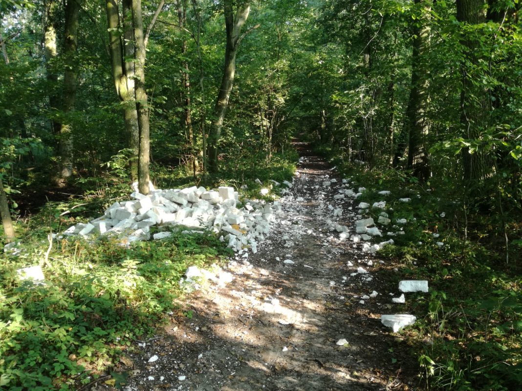Kilka tygodni temu przy alei łączącej zamek w Szymbarku ze starym cmentarzem Finckensteinów, będącej jednocześnie szlakiem turystycznym, wyrzucono olbrzymie ilości styropianu. Wiatr rozwiewał je po drodze i po zabytkowym parku, tworząc nienajlepsze wrażenie. Warto dodać, że styropian rozkłada się w tych warunkach aż 7,5 miliarda lat!
