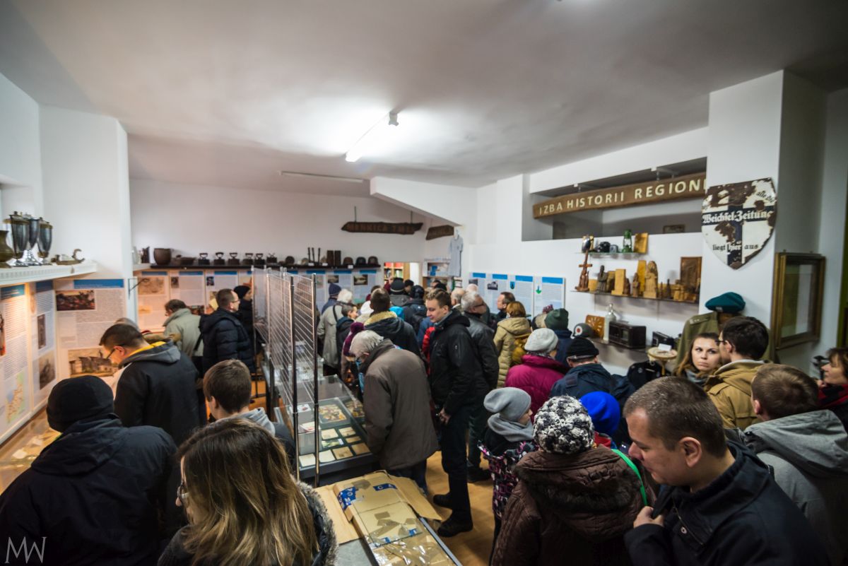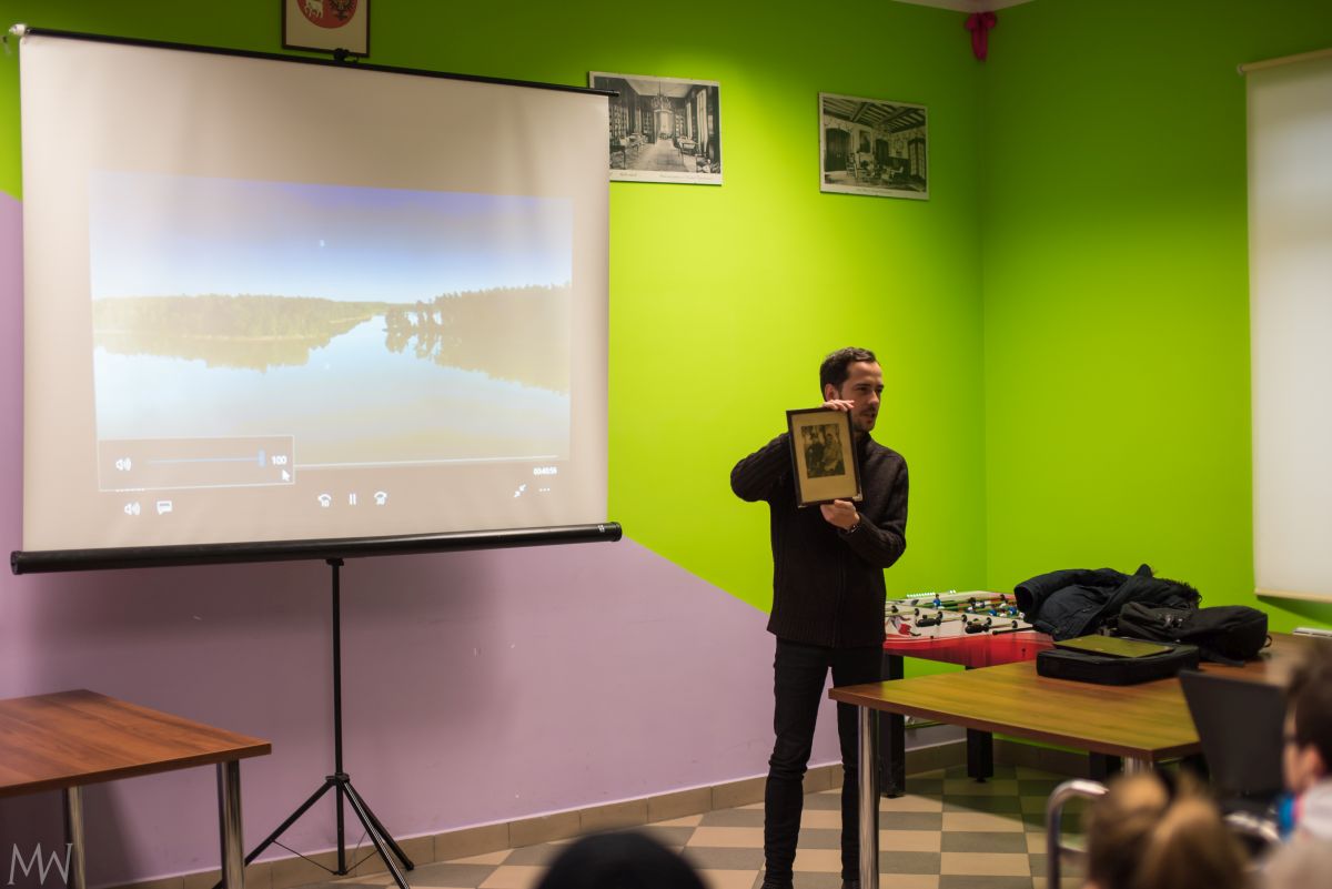 Grudniowa wyprawa rozpoczęła się od pokazu jednej z ośmiu części filmu „Tannenberg 1914. Pamięć buduje tożsamość”, który z inicjatywy Przemysława Kaweckiego powstawał między innymi w Ogrodzieńcu i Iławie. Pokaz zorganizowano w świetlicy w Ogrodzieńcu, kilkaset metrów od ruin pałacu Paula von Hindenburga, które można było zobaczyć w filmie.
