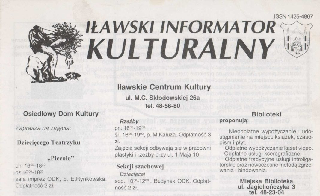 Wydanie „Iławskiego Informatora Kulturalnego” z kalendarzem imprez na rok 1996. Informator wydano w nakładzie 1,2 tys. egzemplarzy. Znaleźć można w nim było zapowiedzi wydarzeń, odbywających się na terenie Iławy od kwietnia do grudnia, a wśród nich między innymi informacje o „Ogólnopolskim Festiwalu Pieśni i Piosenki Religijnej” (7-9.06.1996), „Międzynarodowym Festiwalu Jeziorak Shanties Meeting” (12-14.07.1996) czy „XXVI Międzynarodowym Festiwalu Old Jazz Meeting Złota Tarka” (15-18.08.1996). W biuletynie znalazła się też informacja o powstaniu Centrum Sportu i Rekreacji, którego dyrektorem w drodze konkursu został Jerzy Sawicki.