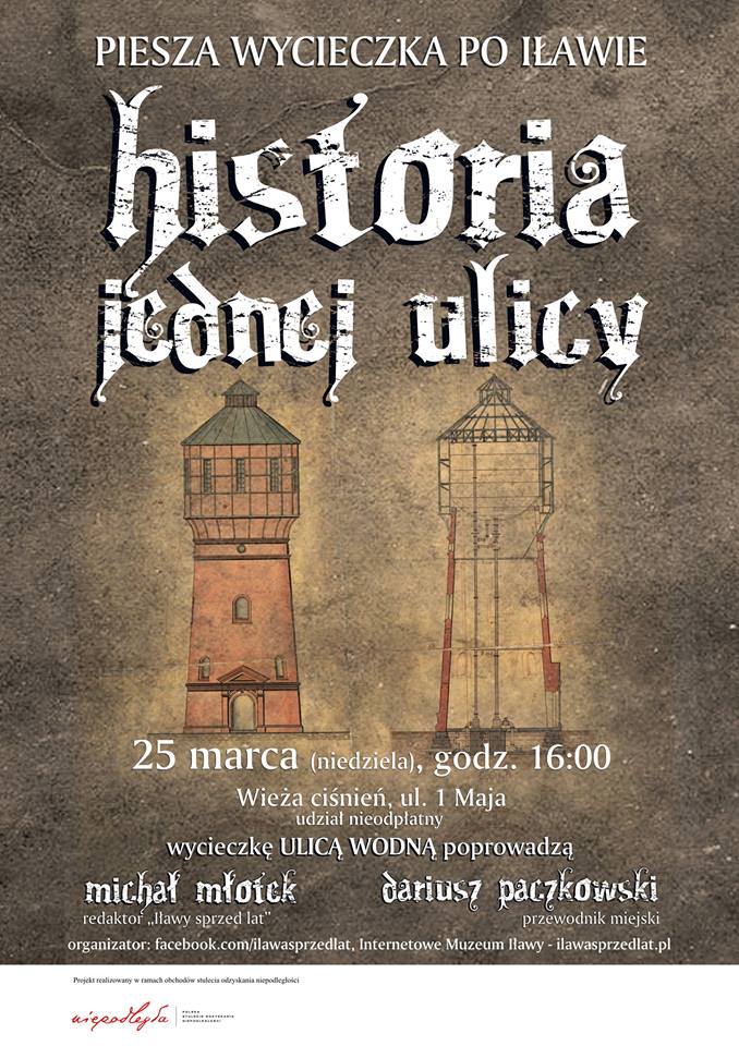 Najbliższa wycieczka odbędzie się w niedzielę 25 marca. Zbiórka uczestników zaplanowana została obok wieży ciśnień przy ulicy 1 Maja o godzinie 16:00. Wszystkie wycieczki organizowane w 2018 roku przez Internetowe Muzeum Iławy opatrzone są znakiem identyfikacji wizualnej Programu Wieloletniego „Niepodległa”, co oznacza, że zostały włączone do programu oficjalnych obchodów stulecia odzyskania niepodległości przez Polskę.