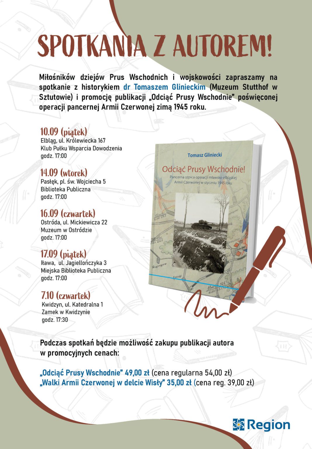 Spotkanie z Tomaszem Glinieckim odbędzie się w piątek 17 września o godz. 17:00 w Miejskiej Bibliotece Publicznej w Iławie. Podczas spotkania będzie można nabyć książkę „Odciąć Prusy Wschodnie! Pancerna szpica operacji mławsko-elbląskiej Armii Czerwonej w styczniu 1945 roku” w promocyjnej cenie.