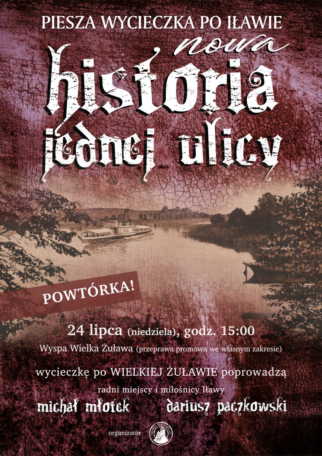 Będzie to powtórka ostatniego spaceru po Iławie organizowanego w ramach nowej „Historii jednej ulicy” – cyklu wypraw będących kontynuacją popularnej serii spacerów, organizowanych w Iławie w latach 2015-2019. Będzie to już trzecia wyprawa na Wielką Żuławę przygotowana przez Michała Młotka i Dariusza Paczkowskiego. Ostatnia wycieczka na iławską wyspę miała miejsce 26 czerwca 2022 roku, wcześniejsza 24 czerwca 2018 roku. Wtedy wzięło w nich udział – kolejno – ponad 250 i 150 osób.
