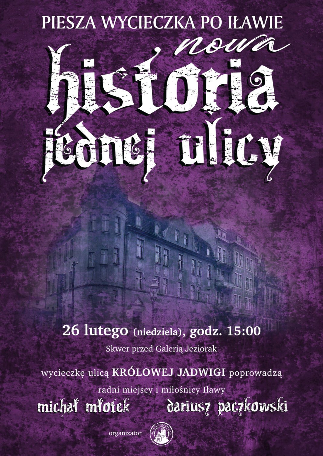 Zbliża się termin kolejnej edukacyjnej wyprawy po Iławie. W najbliższą niedzielę 26 lutego Michał Młotek i Dariusz Paczkowski zabiorą mieszkańców na spacer po ulicy Królowej Jadwigi.