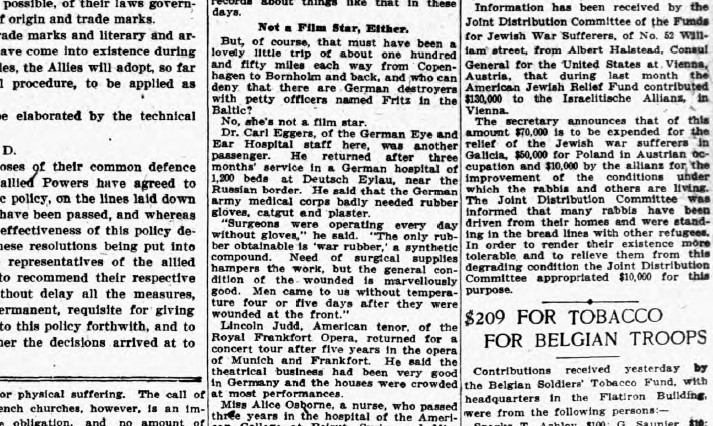 W 1917 roku amerykańska gazeta „Sonntagsblatt der N.Y. Staats-Zeitung”, wydawana przez mniejszość niemiecką w Nowym Jorku, opublikowała w wydaniu z 6 maja obszerny tekst opisujący pobyt amerykańskich lekarzy w Iławie. Artykuł opatrzono zdjęciami budynku szkoły neogotyckiej oraz obiektów przy dzisiejszych ulicach Jasielskiej i Wiejskiej. Jaki był powód pobytu amerykańskich lekarzy w Iławie w czasie I wojny światowej? Pytanie to przez wiele lat pozostawało bez odpowiedzi.