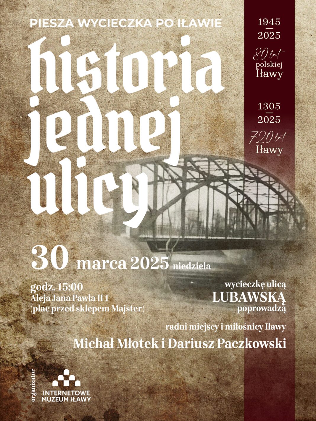 Organizatorami cyklu spacerów „Historia jednej ulicy”, które odbywają się pod szyldem Internetowego Muzeum Iławy, są radni miejscy i miłośnicy Iławy Michał Młotek i Dariusz Paczkowski.